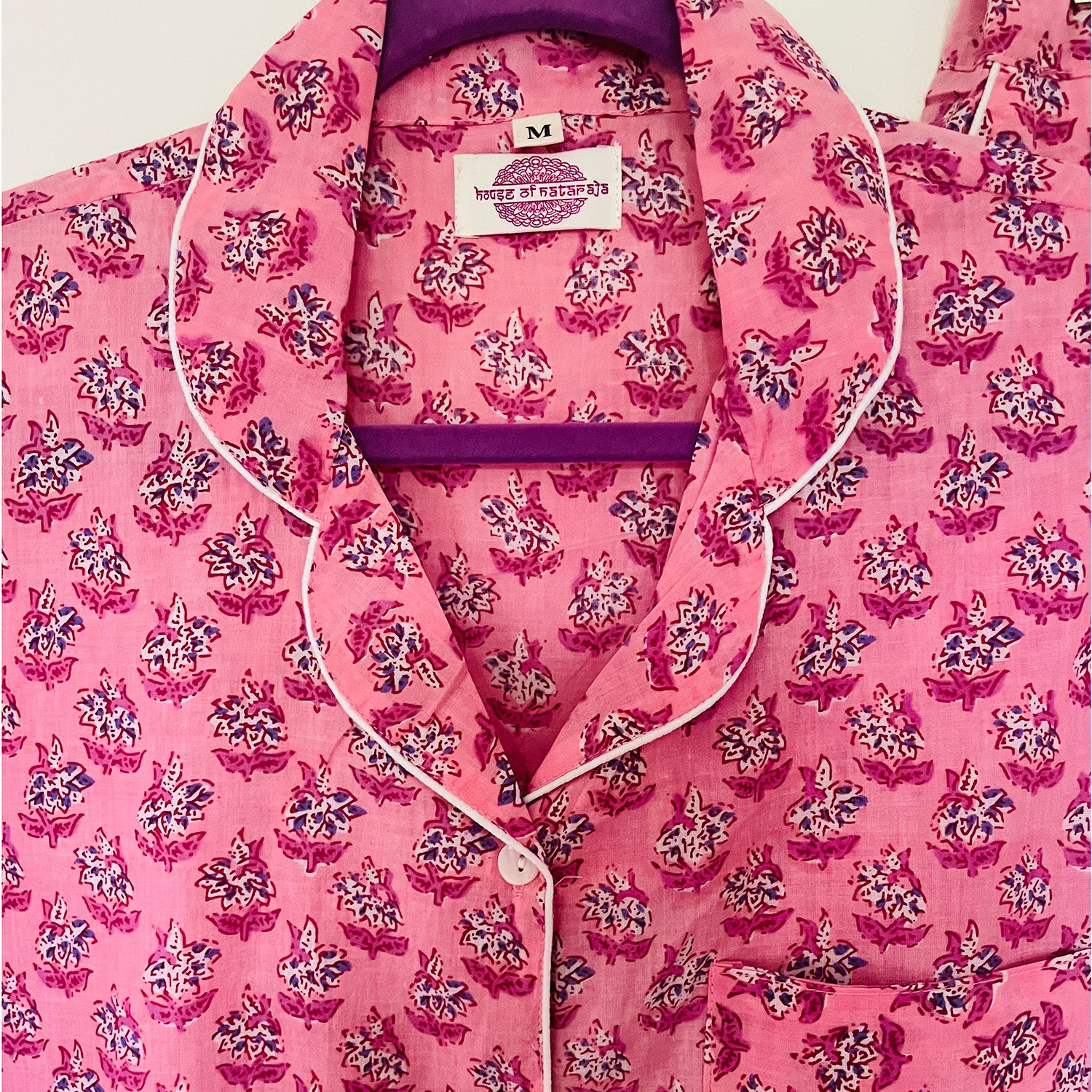 Relax, unwind, and sleep soundly in these luxurious 100% cotton pyjamas, handcrafted in small batches by skilled artisans in Jaipur, Rajasthan.