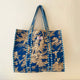 Cream/Aqua Flower Cotton Quilted Medium Zip Tote