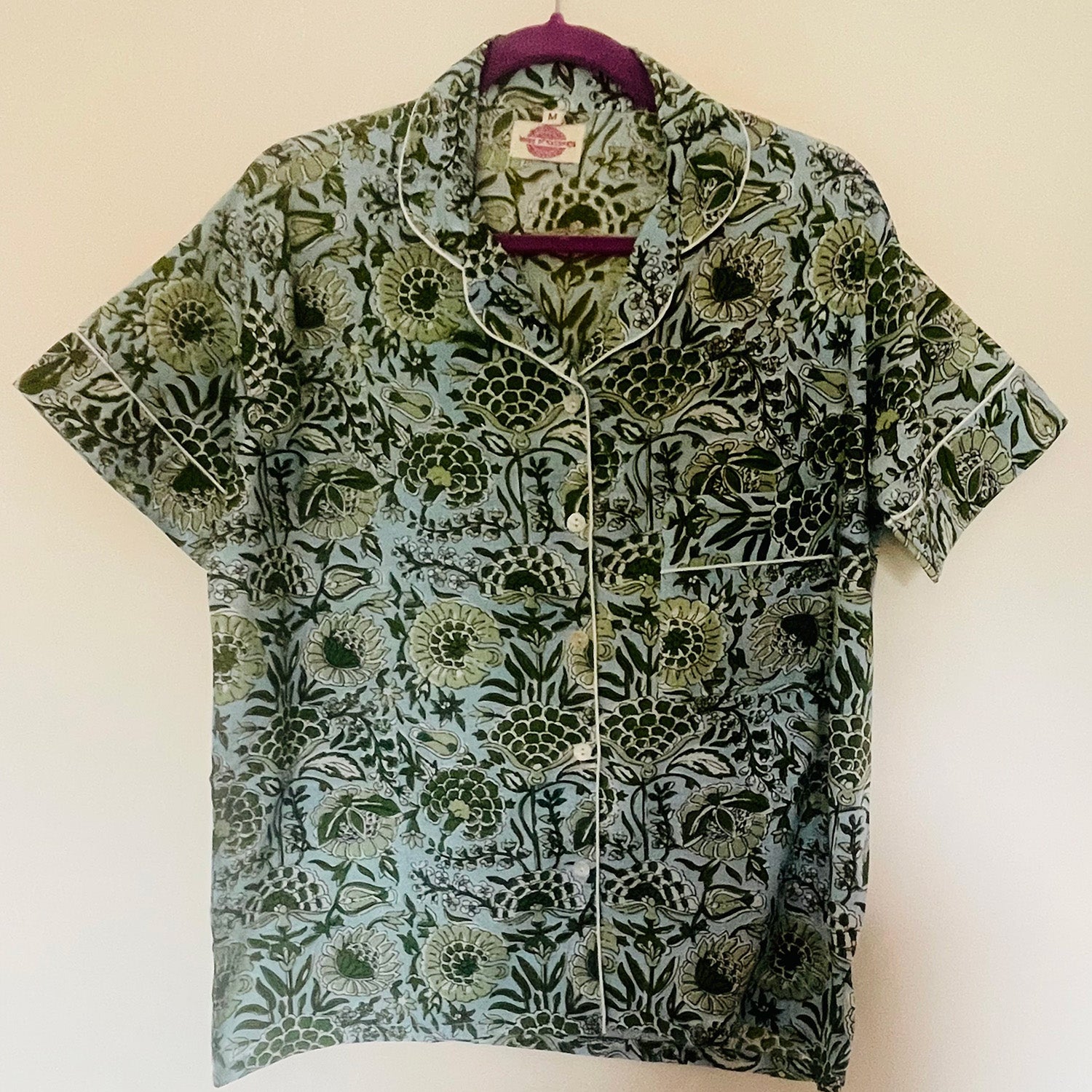 Blue/green Floral Shortie Pyjama Set – Size Medium