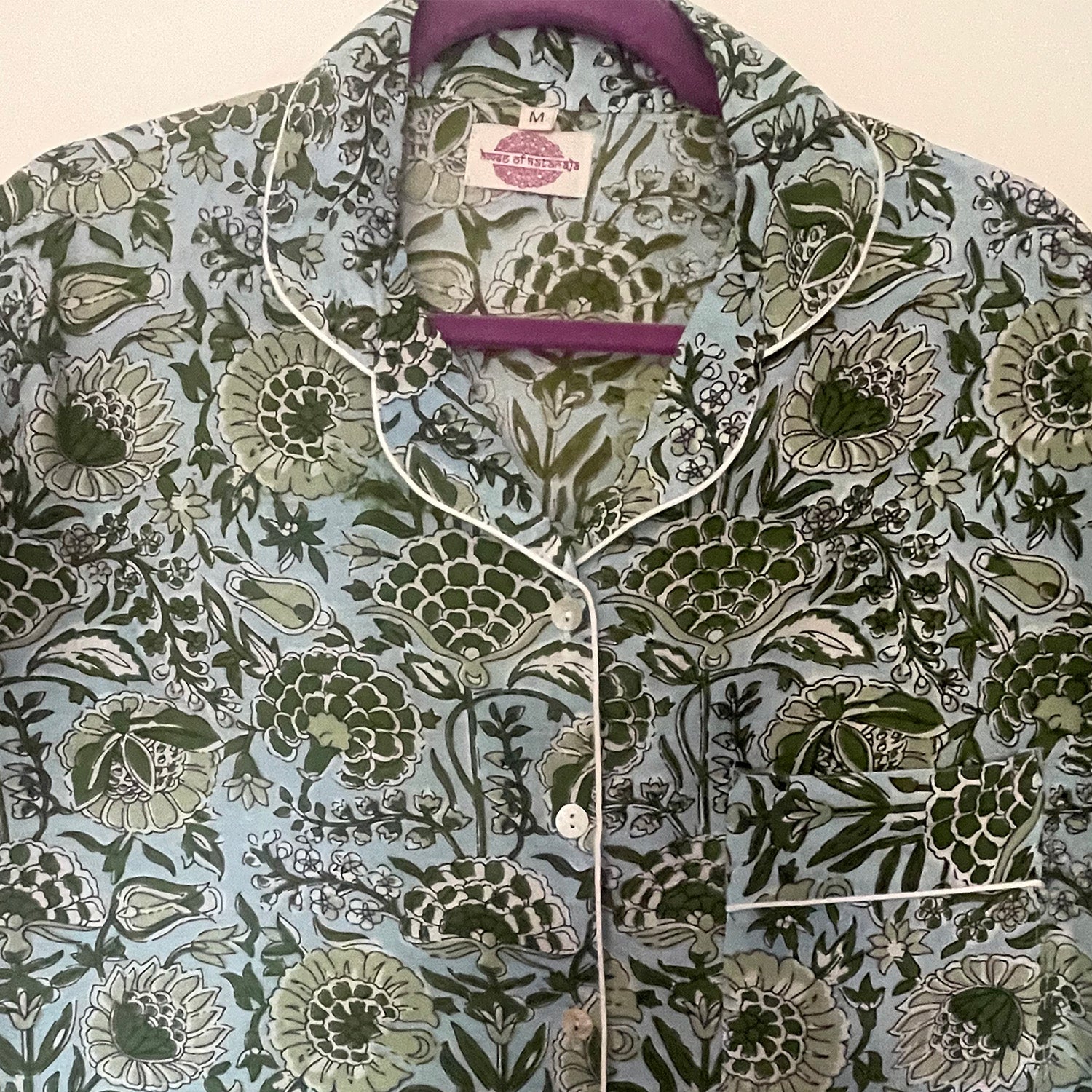 Blue/green Floral Shortie Pyjama Set – Size Small
